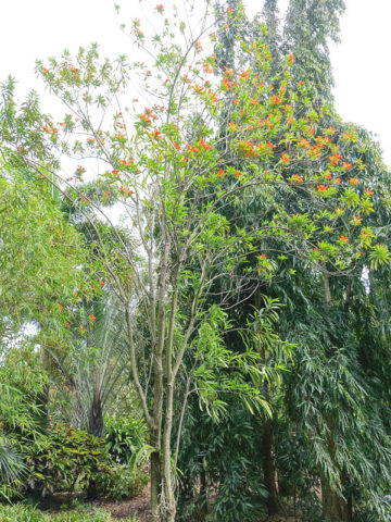 The growth rate of Butterfly Tree, Flor de Fuego will vary greatly depending on soil type, sunlight, temperature and other factors. A few leaves are often trimmed prior to shipping to reduce transpiration and travel stress.