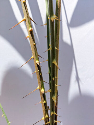 Before leaving, Asian Climbing Rattan Palms are inspected, watered, and pruned. Larger plants, generally those that ship in 8″ pots, will be topped to 36″ or 48″ overall, depending on the variety, if necessary, to facilitate shipping. Your new plants’ pot is then bagged to ensure that the soil stays in the pot and not loose in the box. Plants are tissue or kraft paper wrapped and generally secured in place with natural biodegradable peanuts.