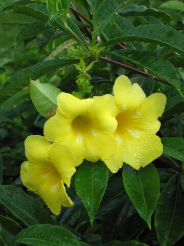 The growth rate, bloom size and color of Allamanda Golden Butterfly will vary greatly depending on soil type, sunlight, temperature and other factors. A few leaves are often trimmed prior to shipping to reduce transpiration and travel stress.