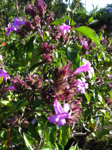 Mandatory For Any Tropical Landscape. A Giant of a plant, this Ruellia is native to Bolivia and sports delicate 3 inch long trumpet flowers of pink with lavender veins. Provide it with a moist soil and shade for some of the day and you are likely to be rewarded with a large blooming bush covered in lush large, fuzzy green leaves for the better part of summer.