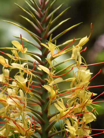 Before leaving, Ginger are inspected, watered, and pruned. Larger plants, generally those that ship in 8″ pots, will be topped to 36″ or 48″ overall, depending on the variety, if necessary, to facilitate shipping. Your new plants’ pot is then bagged to ensure that the soil stays in the pot and not loose in the box. Plants are tissue or kraft paper wrapped and generally secured in place with natural biodegradable peanuts.