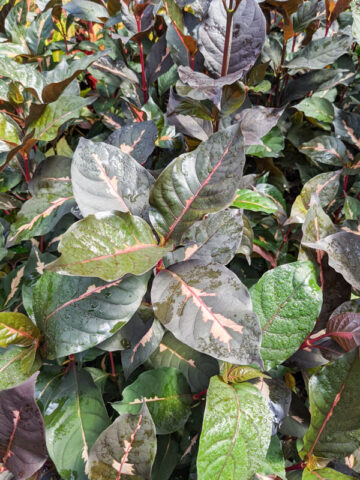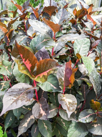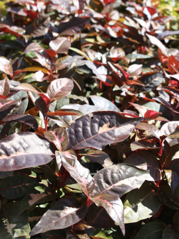 Brighten up your patio. Handsome deep purple bi-color leaves on maroon stems. Graptophyllum make an amazing accent plant for the patio or garden. Delicate flowers emerge from the stem tops once a year much to the enjoyment of the butterflies. Easy to grow and care for and a unique addition to any plant collection. This plant is never out of style. (Graptophyllum are easy to share, cuttings root quickly in water)