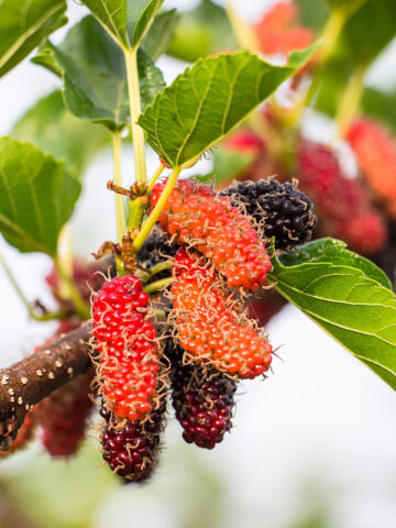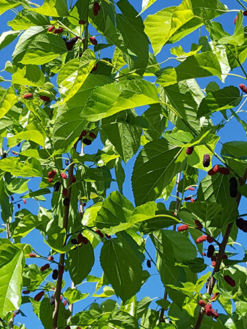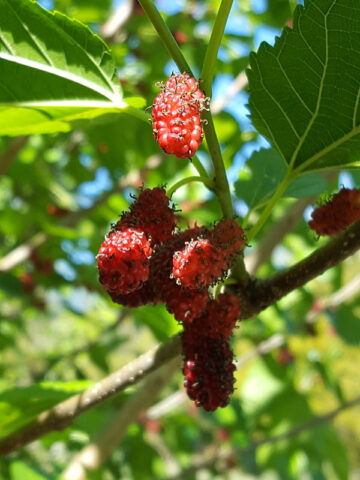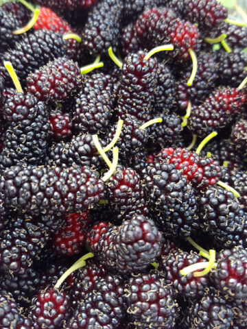 Mulberry harvests only last about three weeks, trees produce far too many sweet berries for one person to eat (sometimes ten thousand or more), you may want to invite friends and family to join in.