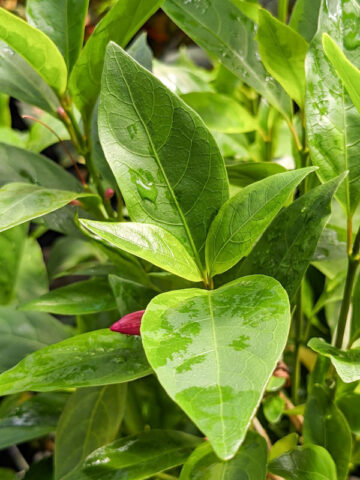 When you receive your new Graptophyllum, there is no need to worry about planting right away. Your new plant can be stored for a while by simply placing it in a bucket with about a half inch of water and moving it to a shady location, simply water when dry. This will give you plenty of time to select the ideal location for your new Graptophyllum.