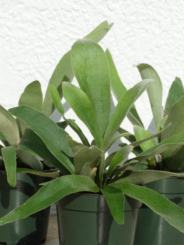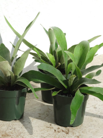 Before leaving, French Staghorns are inspected, watered, and pruned. Larger plants, generally those that ship in 8″ pots or with totems, will be topped to 36″ or 48″ overall, depending on the variety, if necessary to facilitate shipping. Your new plants’ pot is then bagged to ensure that the soil stays in the pot and not loose in the box. Plants are tissue or kraft paper wrapped and secured in place with natural biodegradable peanuts.