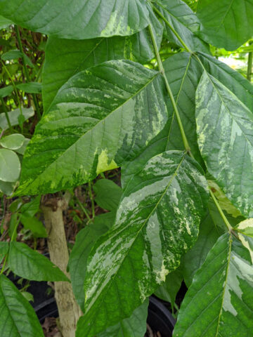 RARE Very random leaf coloration, often starting bi-color green and morphing to cream and gray mottling while some remain deep green. If you are lucky to own an AEAE banana, this will be the perfect companion tree. Big crinkled red tulip like bells with red streaked gold throats and frilly yellow edges bud out of horn shaped, velvety buds on the branch tips of this spectacular tree. With a picturesque buttressed truck and gray bark there seems to be no end to the awesomeness of this tree.