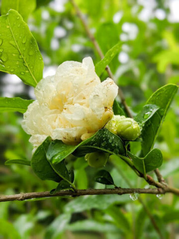 Before leaving, Pomegranate are inspected, watered, and pruned. Larger plants, generally those that ship in 8″ pots, will be topped to 36″ or 48″ overall, depending on the variety, if necessary, to facilitate shipping. Your new plants’ pot is then bagged to ensure that the soil stays in the pot and not loose in the box. Plants are tissue or kraft paper wrapped and generally secured in place with natural biodegradable peanuts.