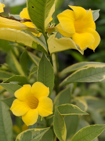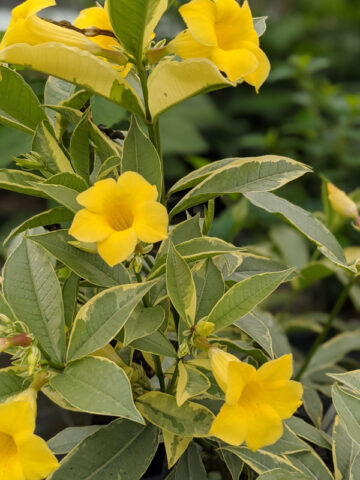 The growth rate, bloom size and color of Hawaiian Gold Allamanda will vary greatly depending on soil type, sunlight, temperature and other factors. A few leaves are often trimmed prior to shipping to reduce transpiration and travel stress.