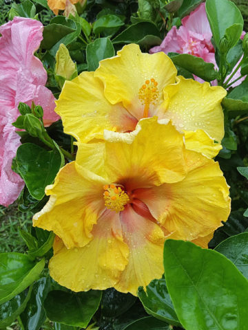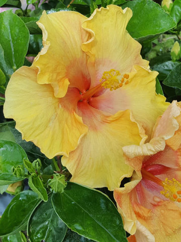 Our Sunshine plants allow you to enjoy aromatic tropical blooms in the first year. All the Sunshine we offer are vegetatively propagated from healthy flowering mother stock, grown right here in our nursery. This means, you receive an exact clone, true in form and bloom and won’t have to wait years to enjoy fresh flowers, as is often the case with seed grown or tissue culture plants. Truly a superior Hibiscus!