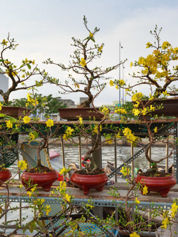 Before leaving, Hoa Mai, Mai Vang are inspected, watered, and pruned. Larger plants, generally those that ship in 8″ pots, will be topped to 36″ or 48″ overall, depending on the variety, if necessary, to facilitate shipping. Your new plants’ pot is then bagged to ensure that the soil stays in the pot and not loose in the box. Plants are tissue or kraft paper wrapped and generally secured in place with natural biodegradable peanuts.