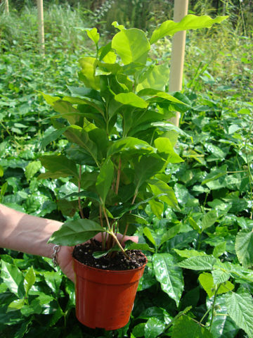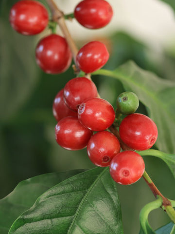 The growth rate of Kona Coffee will vary greatly depending on soil type, sunlight, temperature and other factors. A few leaves are often trimmed prior to shipping to reduce transpiration and travel stress.