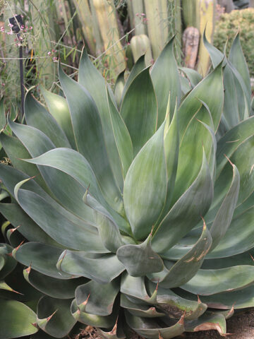 Before leaving, Agave are inspected, watered, and pruned. Larger plants, generally those that ship in 8″ pots, will be topped to 36″ or 48″ overall, depending on the variety, if necessary, to facilitate shipping. Your new plants’ pot is then bagged to ensure that the soil stays in the pot and not loose in the box. Plants are tissue or kraft paper wrapped and generally secured in place with natural biodegradable peanuts.