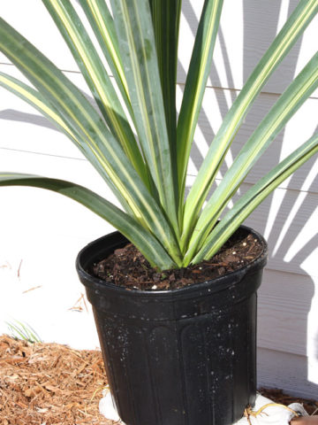 Very showy! Considered the smaller of the Screw Pines. The trunk is smooth and the branches grow at wide angles. Long smooth edged, lance shaped leaves are deep green margined with a mellow lime or yellow wide strip in the center and spirally arranged. Easily grow as a house plant when young, Tectorius can reach 20 feet or more with age. As the plant grows and branches these send out prop roots to brace the long heavy branch, which in turn develop into supporting trunks.