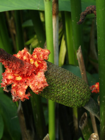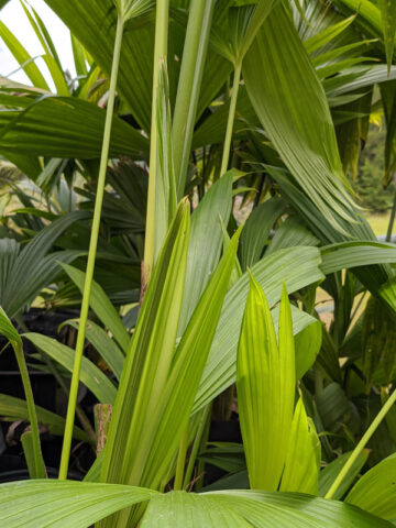 (Lg. Specimen, 6” Pot) This well known plant, resembling fan palm, is a beautiful palm-like monocot whose fibers are used in hat making. It makes a nice tropical addition to sunroom or patio where is limited. Carludovica is a prolific grower and best suited to warm temperate climates.