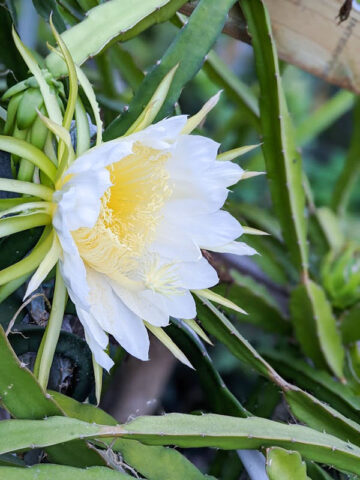 When you receive your new Dragon Fruit Cactus, there is no need to worry about planting right away. Your new plant can be stored for a while by simply placing it in a bucket and moving it to a shady location, simply water when dry. This will give you plenty of time to select the ideal location for your new Dragon Fruit Cactus. This Dragon Fruit Cactus in particular is well rooted, grown and shipped in a 2″x 2″x 7″ tall pot allowing for deeper roots and faster growth.