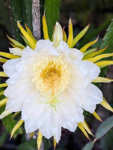 Before leaving, Dragon Fruit Cactus are inspected, watered, and pruned. Larger plants, generally those that ship in 8″ pots, will be topped to 36″ or 48″ overall, depending on the variety, if necessary, to facilitate shipping. Your new plants’ pot is then bagged to ensure that the soil stays in the pot and not loose in the box. Plants are tissue or kraft paper wrapped and generally secured in place with natural biodegradable peanuts.
