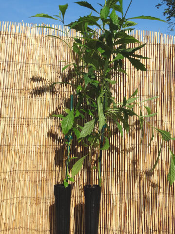 Before leaving, Clerodendrum are inspected, watered, and pruned. Larger plants, generally those that ship in 8″ pots, will be topped to 36″ or 48″ overall, depending on the variety, if necessary, to facilitate shipping. Your new plants’ pot is then bagged to ensure that the soil stays in the pot and not loose in the box. Plants are tissue or kraft paper wrapped and generally secured in place with natural biodegradable peanuts.