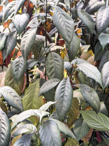 STRIKING two-toned 6-inch long leaves are dark green and deep purple covering stems that can grow up to 6 feet in a season. Shrubs planted in multiples make a great border or small hedge. Easy to care for it will be happiest growing in the shady moister area of your collection. Add a splash of color ASAP – Orizaba wants to grow in your private paradise.