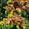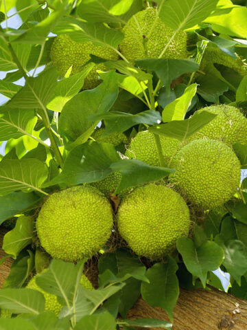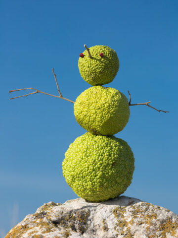 From fencing to bows and floral arrangements. The perfect living hedge tree, capable of out-lasting any installed fence and the natural solution for protecting your yard or acreage from garden eating predators. Widely planted to make cattle fences before the barbed wire boom of the late 1800s, the branches are armed with stout, straight spines and the trees were tightly spaced and high, to keep horses and deer from jumping over, bulls from pushing through, and hogs from wiggling in. Named after the Osage Indians, the extremely durable, strong, flexible, yellow wood was harvested for used for bows by the native tribes and is now prized for railway ties and fence posts. This versatile tree produces a unique fruit that is bumpy in appearance with a slight citrus fragrance and is considered inedible due to its dry texture. While the fruit is not poisonous, the seeds are edible part and this typically soft-ball sized, yellow-green fruit, is often collected and used in exotic floral arrangements.