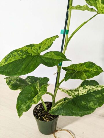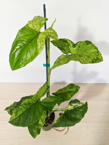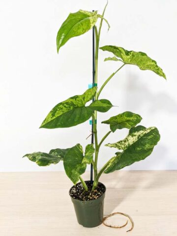 Before leaving, Mottled Arrowhead Syngonium plants are inspected, watered, and pruned. Larger plants, generally those that ship in 8″ pots or with totems, will be topped to 36″ or 48″ overall, depending on the variety, if necessary to facilitate shipping. Your new plants’ pot is then bagged to ensure that the soil stays in the pot and not loose in the box. Plants are tissue or kraft paper wrapped and secured in place with natural biodegradable peanuts.