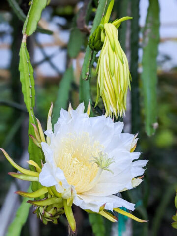 When you receive your new Dragon Fruit Cactus, there is no need to worry about planting right away. Your new plant can be stored for a while by simply placing it in a bucket and moving it to a shady location, simply water when dry. This will give you plenty of time to select the ideal location for your new Dragon Fruit Cactus. This Dragon Fruit Cactus in particular is well rooted, grown and shipped in a 2″x 2″x 7″ tall pot allowing for deeper roots and faster growth.