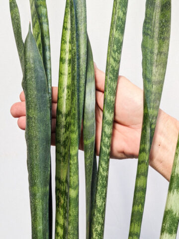Before leaving, Sansevieria are inspected, watered, and pruned. Larger plants, generally those that ship in 8″ pots, will be topped to 36″ or 48″ overall, depending on the variety, if necessary, to facilitate shipping. Your new plants’ pot is then bagged to ensure that the soil stays in the pot and not loose in the box. Plants are tissue or kraft paper wrapped and generally secured in place with natural biodegradable peanuts.