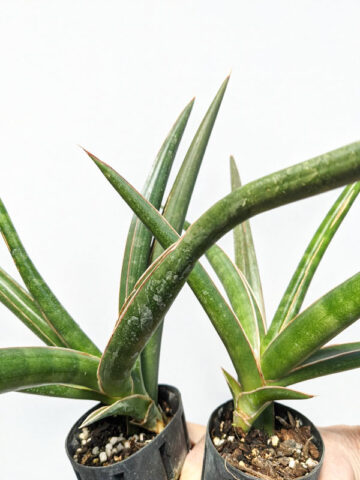 Before leaving, Sansevieria are inspected, watered, and pruned. Larger plants, generally those that ship in 8″ pots, will be topped to 36″ or 48″ overall, depending on the variety, if necessary, to facilitate shipping. Your new plants’ pot is then bagged to ensure that the soil stays in the pot and not loose in the box. Plants are tissue or kraft paper wrapped and generally secured in place with natural biodegradable peanuts.