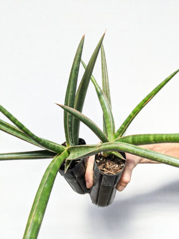 When you receive your new Sansevieria, there is no need to worry about planting right away. Your new plant can be stored for a while by simply placing it in a tray and moving it to a shady location, simply water when dry. This will give you plenty of time to select the ideal location for your new Sansevieria.