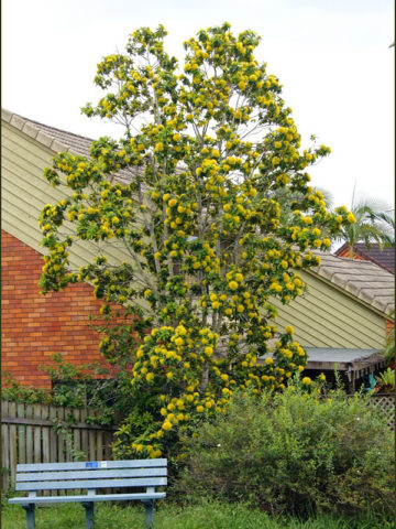 The growth rate of Showy Golden Penda will vary greatly depending on soil type, sunlight, temperature and other factors. A few leaves are often trimmed prior to shipping to reduce transpiration and travel stress.