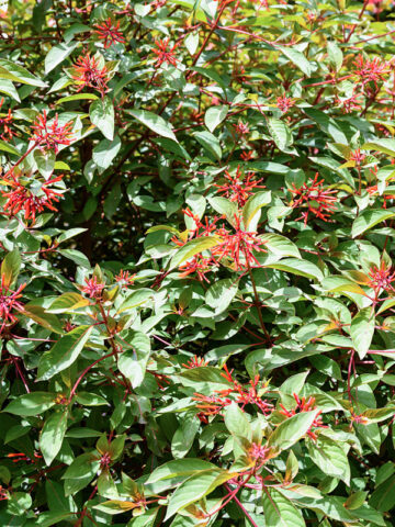 The growth rate, bloom size and color of Southern Firebush will vary greatly depending on soil type, sunlight, temperature and other factors. A few leaves are often trimmed prior to shipping to reduce transpiration and travel stress.