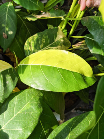 The growth rate of Large Leaf Lemon Variegated Jungle Ficus will vary greatly depending on soil type, sunlight, temperature and other factors. A few leaves are often trimmed prior to shipping to reduce transpiration and travel stress.