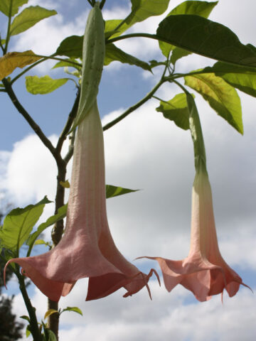 Our plants allow you to enjoy large blooms in the first year or so. All the Brugmansia we offer are vegetatively propagated from healthy, vigorous, flowering mother stock, grown right here in our nursery. This means, you receive an exact clone, true in form and won’t have to wait four to five years to enjoy the beautiful blooms, as is often the case with seed grown or tissue culture plants. Truly a better bloom!