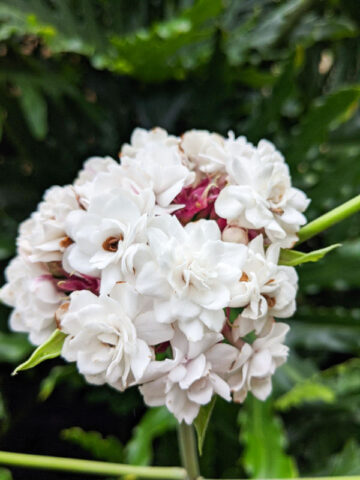 The growth rate, bloom quantity, color and size of Wedding Bouquet will vary greatly depending on soil type, sunlight, temperature and other factors. A few leaves are often trimmed prior to shipping to reduce transpiration and travel stress.