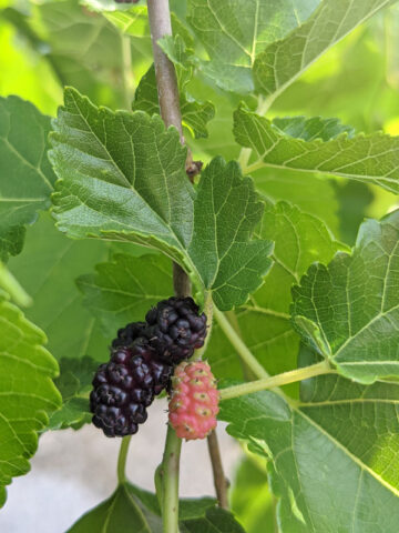 Mulberry harvests only last about three weeks, trees produce far too many sweet berries for one person to eat (sometimes ten thousand or more), you may want to invite friends and family to join in.