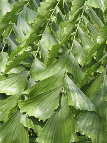 Known in California as Mountain Fishtail, this fabulous, hardy species still is rarely seen around. It is a large, vigorous, and extremely fast-growing tree, up to 6.5 ft per year, with a dense crown. This Fishtail is frequently seen growing semi-wild in the foothills of the eastern Himalayas. As indicated by its habitat, and by experience from cultivation, it is by far the most cold tolerant Fishtail Palm that will stand up to cold winters with moderate frosts to 19f.