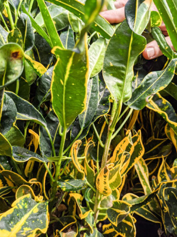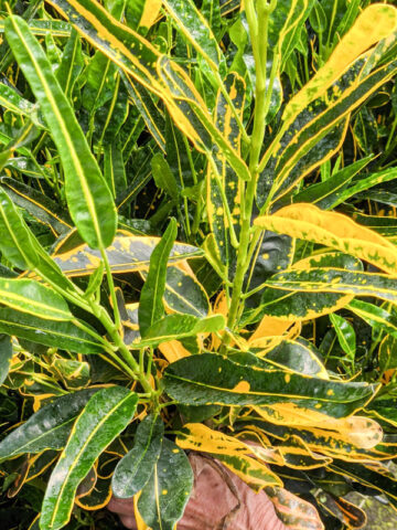 Before leaving, Croton plants are inspected, watered, and pruned. Larger plants, generally those that ship in 8″ pots, will be topped to 36″ or 48″ overall, depending on the variety, if necessary, to facilitate shipping. Your new plants’ pot is then bagged to ensure that the soil stays in the pot and not loose in the box. Plants are tissue or kraft paper wrapped and generally secured in place with natural biodegradable peanuts.